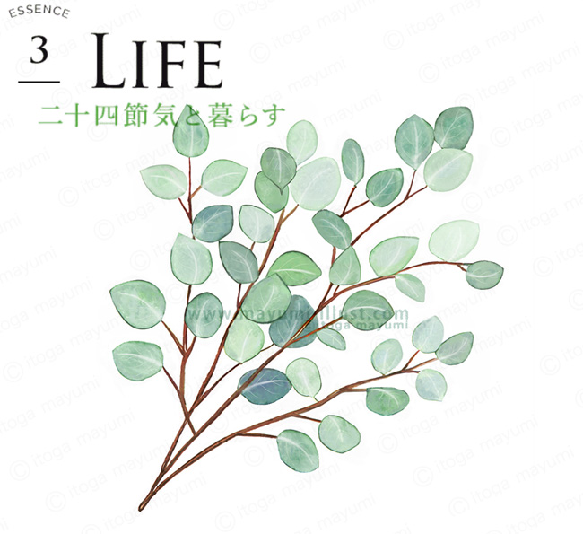 お仕事 「二十四節気ごとの養生法」ユーカリの葉 イラスト 水彩